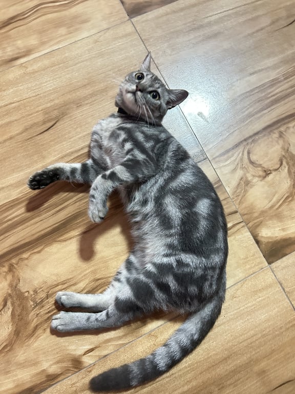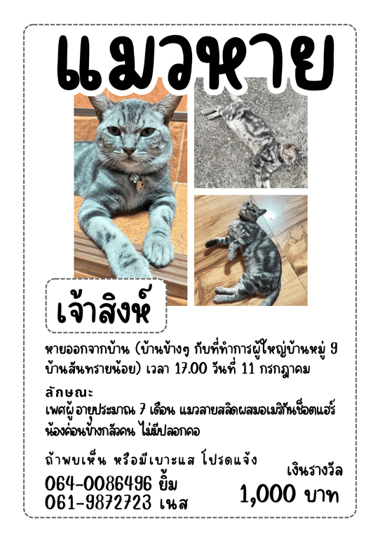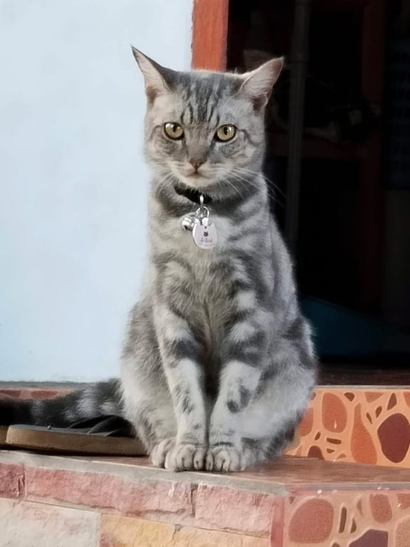 รอยตำหนิ: ลายสลิด สีลายแนวยาว ตัวอ้วน ขนนิ่มๆ กลัวคน กลัวเสียงดัง