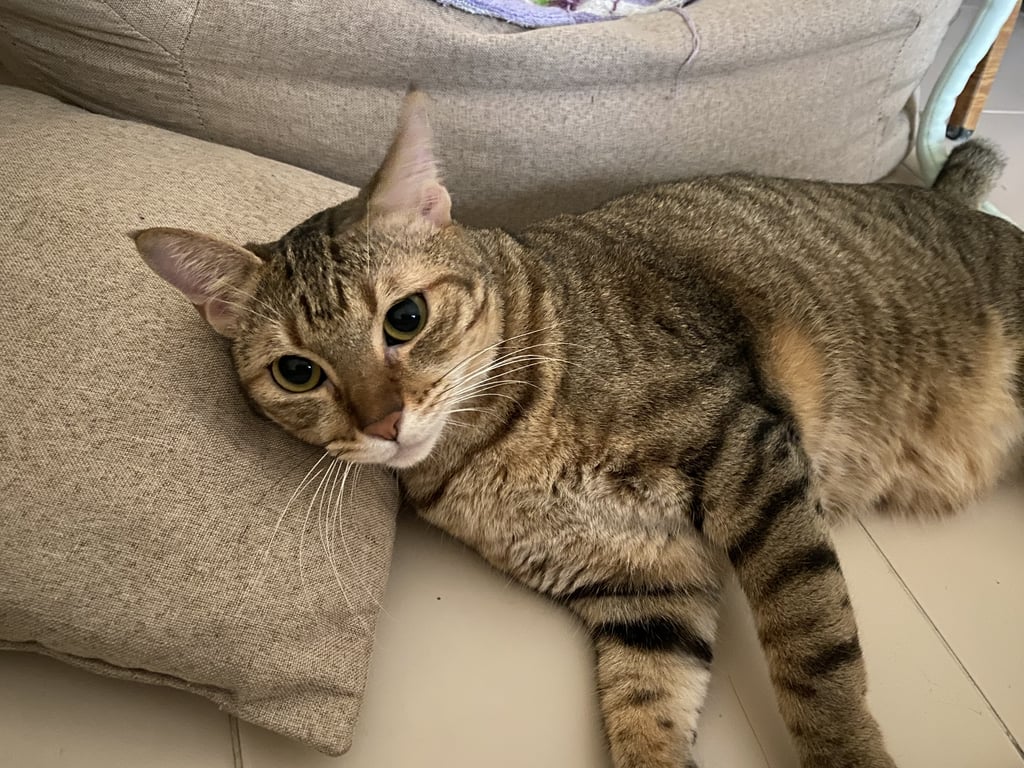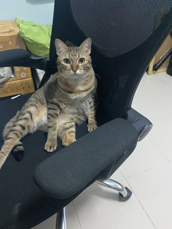 รอยตำหนิ: ลายสลิด ตัวไม่สูง หน้ากลม ใต้คางมีรอยเกาขนหลุดนิดหน่อยไม่ได้ใส่ปลอกคอ ขี้กลัวมาก ขี้ตกใจ แต่ถ้ารู้จักจะอ้อน เสียงร้องไม่ดัง