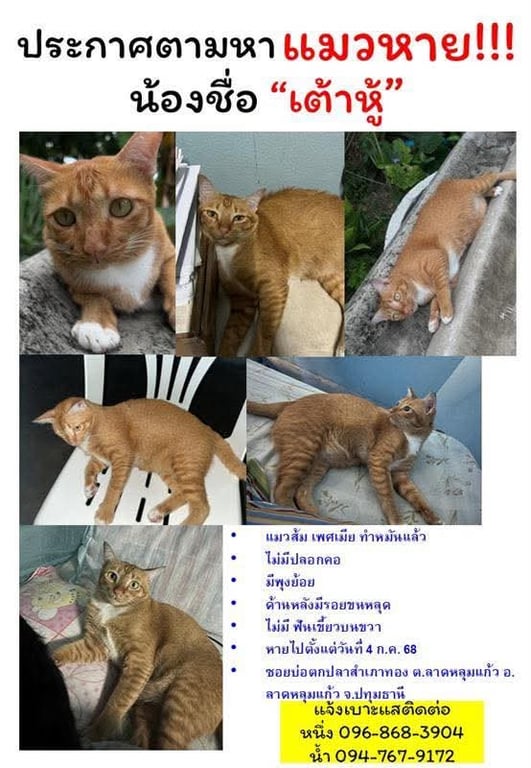 รอยตำหนิ: ไม่มีเขี้ยวบนขวา , ด้านหลังมีรอยขนหลุด , พุงย้อยขี้อ้อน , ไม่ชอบให้เช็ดตัว