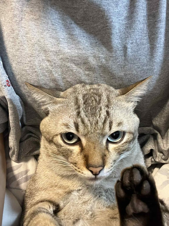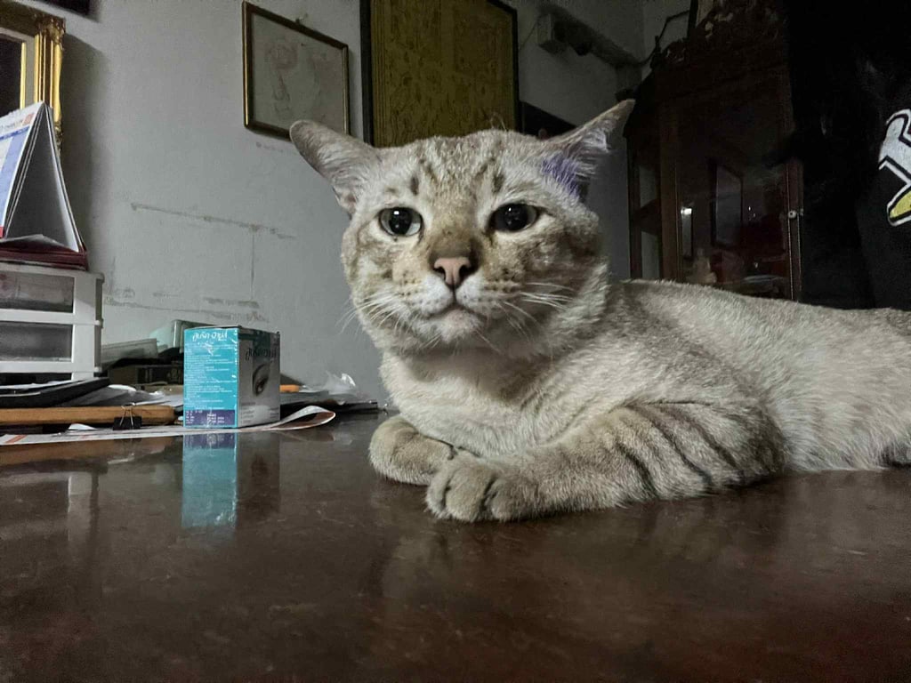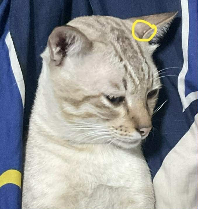รอยตำหนิ: มีรอยแผลนิดหน่อย ตัวผอม ไข่น้องเอียงค่ะ แล้วก็มีขนสีขาวบนหูฝั่งซ้ายไม่แน่ใจวันเกิดแน่ชัดค่ะ แต่อายุประมาณ3ปี เจอครั้งแรก 1ตุลาปี65 ตอนนั้นน้องประมาณ4เดือน นิสัยขี้กลัวขี้ตกใจ มีกัดบ้างค่ะตอนติดสัด