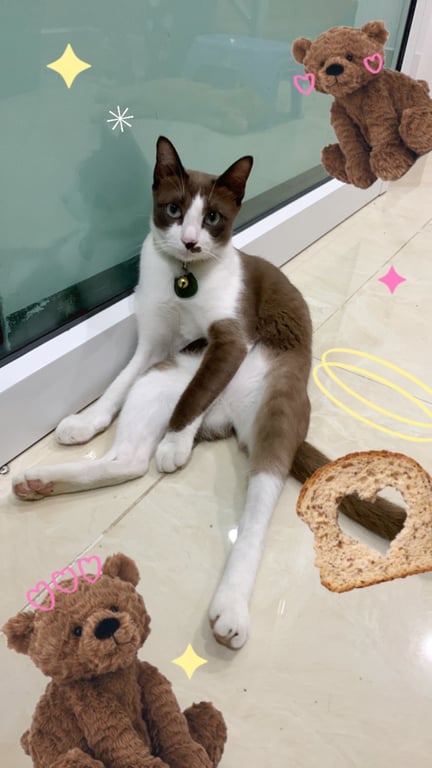 รอยตำหนิ: มีปานที่จมูกข้างนึงหนักประมาณ 3 กิโล ไม่ชอบคน ตกใจง่าย ปลอกคอสีเหลืองมีป้ายชื่อ