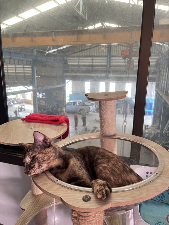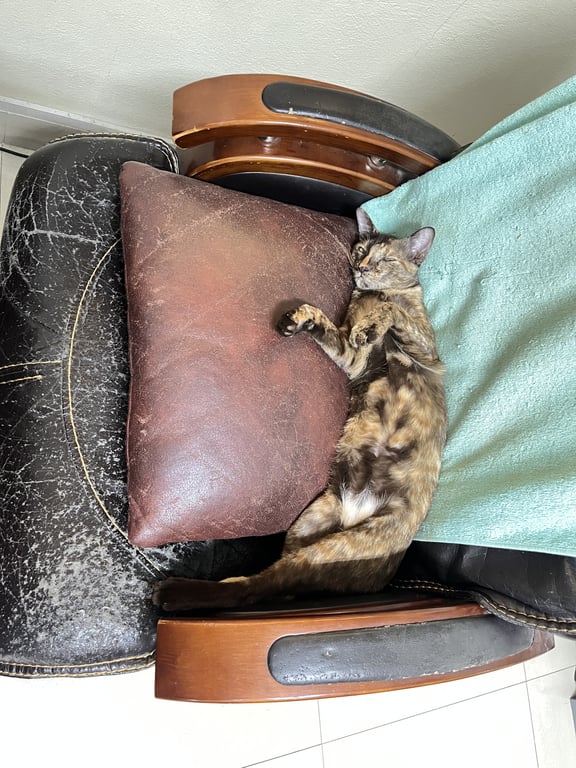 รอยตำหนิ: ขาหลังคนละสีแมวสีเปอะ ขาหลังคนละสีชัดเจน ข้างขวาสีครีมๆส้มๆ ข้างซ้ายสีน้ำตาลเข้ม