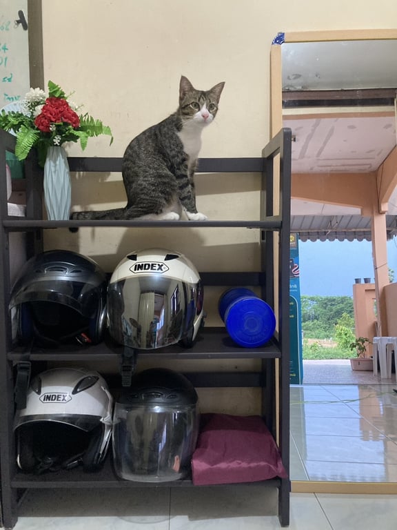 รอยตำหนิ: ลายสลิด หูหนวกขี้อ้อนตอนหิวชอบเอาจมูกมาดันๆหน้าเจ้าของ,ชอบนั่งมองผีเสื้อ,ใช้จมูกดมมากพิเศษทุกสิ่งเพราะหูหนวก,ชอบกินปูอัด,ชอบกินทาโร่่,ชอบเล่นให้โยนตุ๊กตาไปแล้วคาบมาให้เจ้าของ