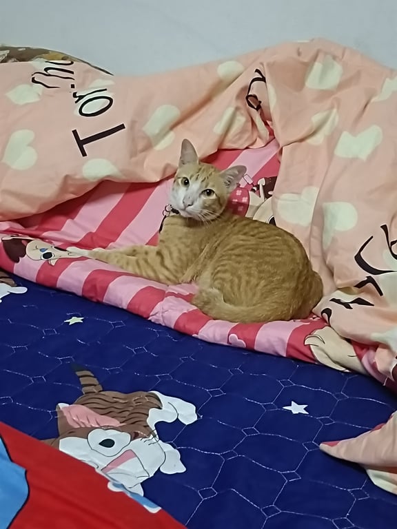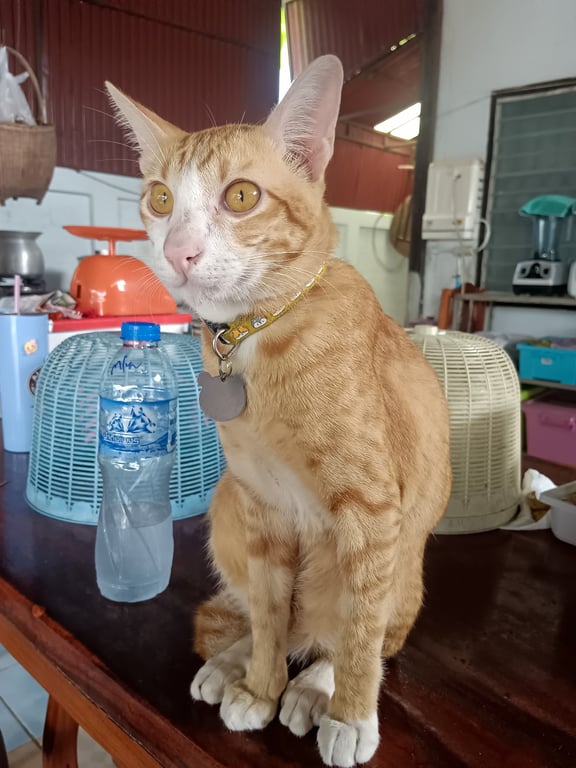 รอยตำหนิ: หางกุด ใส่ถุงเท้า 4 ข้างน้องเป็นแมวขี้กลัว ขี้ตกใจ ไม่ค่อยคุ้นชินกับคนแปลกหน้า