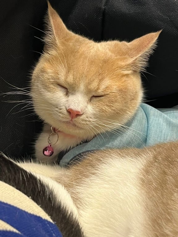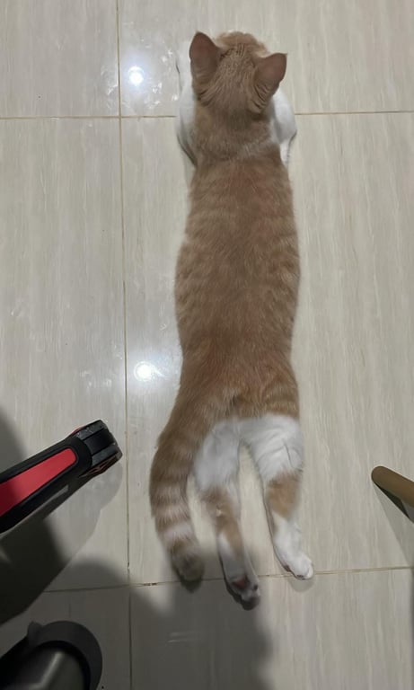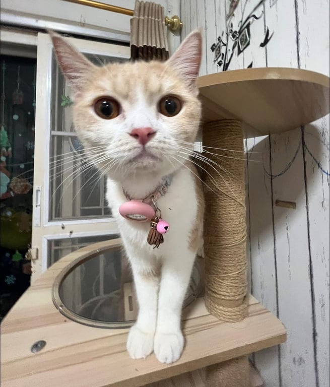 รอยตำหนิ: สีส้มขาวตัวสีขาว ลายส้ม ไม่ได้ใส่ปลอกคอ