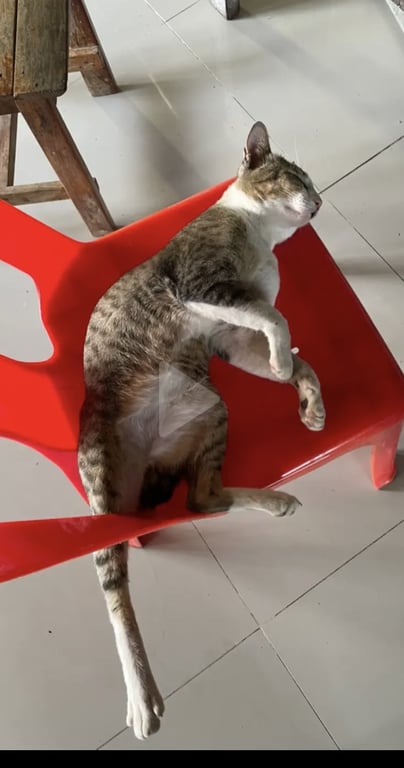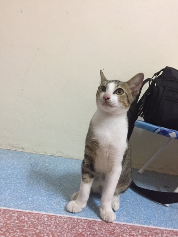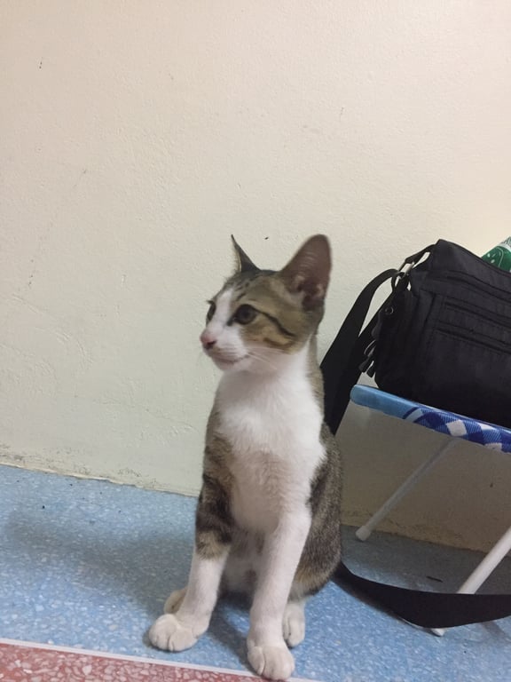 รอยตำหนิ: หางงอม้วนเป็นวงกลม ปลอกคอสีส้ม กระดิงชมพูอายุ 1ปี 8เดือน เพิ่งฟื้นจากการทำหมัน