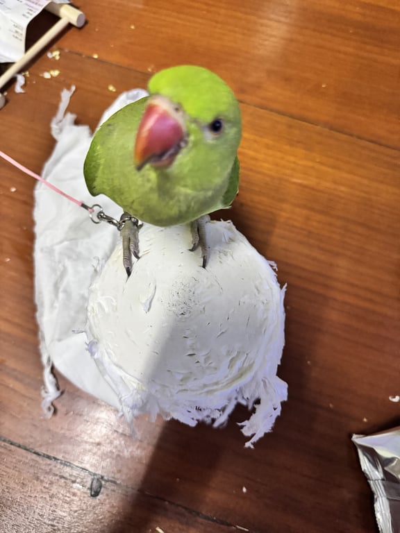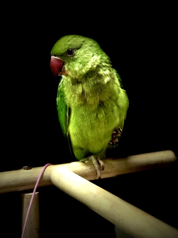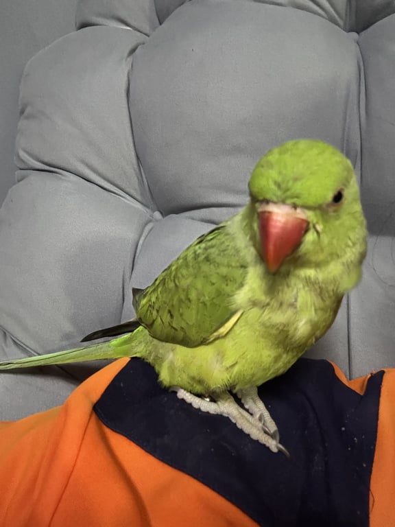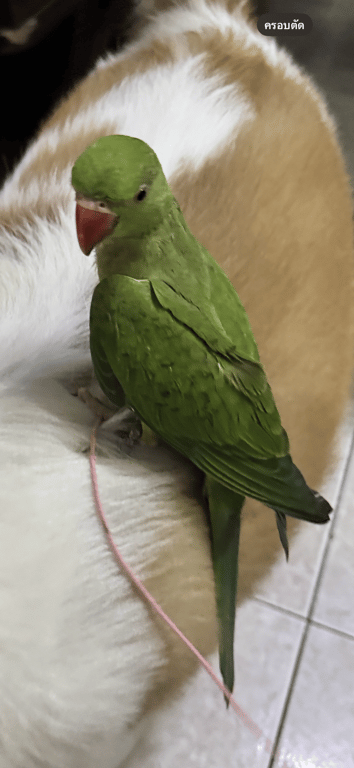 รอยตำหนิ: หางยาว ปากสีส้ม ลำตัวสีเขียวทั้งตัวติดคน เชื่อง พูดว่า แม่จ๋า