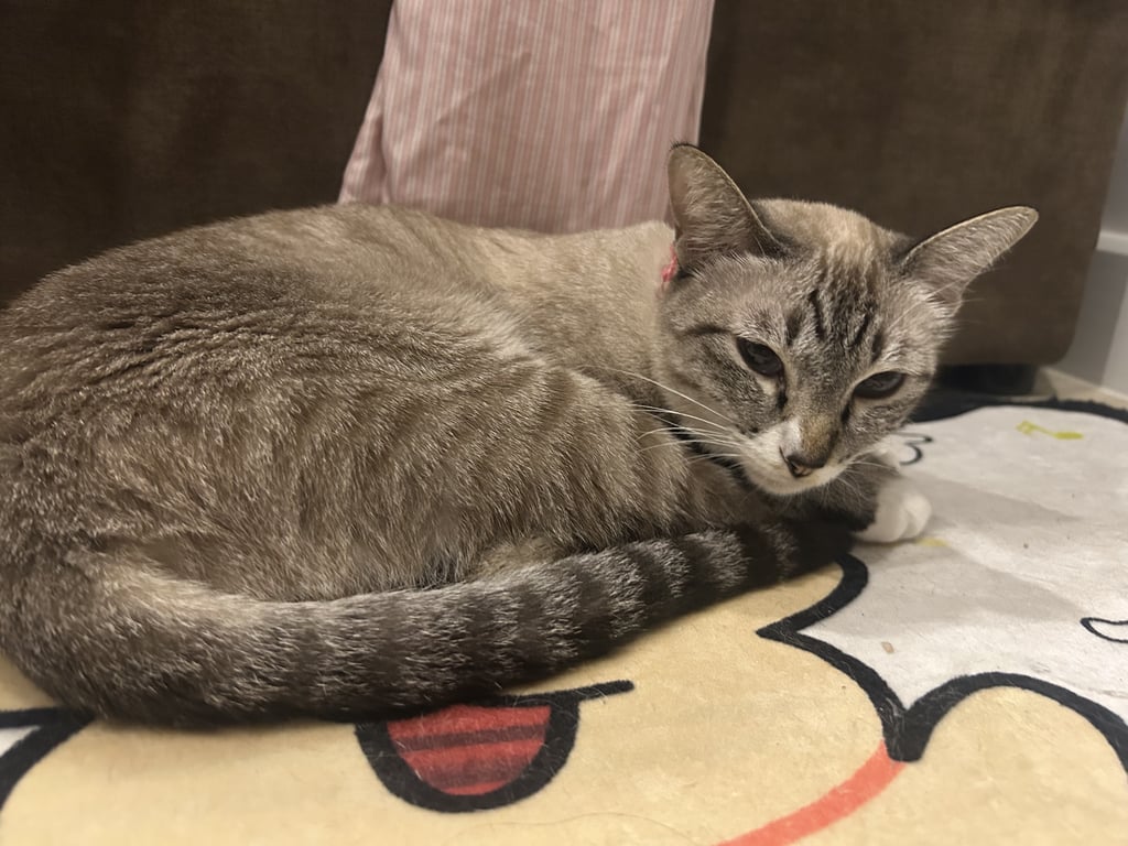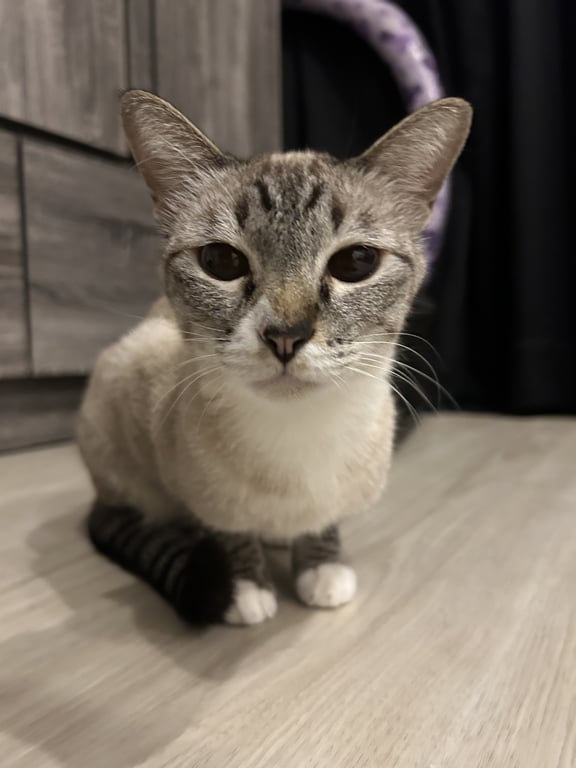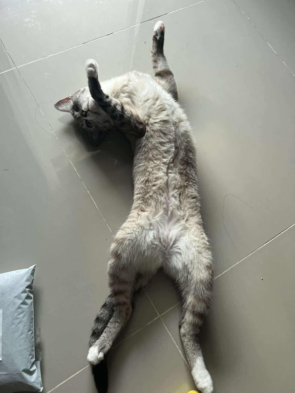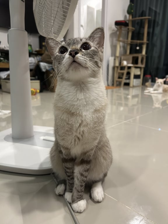 รอยตำหนิ: หน้าออกเทาดำ จมูกขาว ขนฟูๆขนสวย ตรงขาเป็นลายสลิดนิสัยกลัวเสียงรถตื่นคนแปลกหน้า ถ้าเรียกได้ชอบให้เกาหัวลำตัวค่ะ