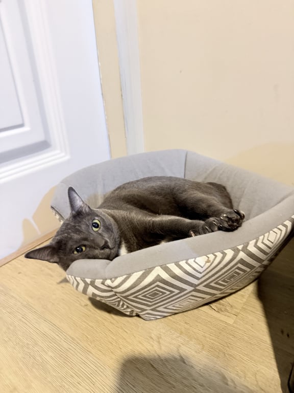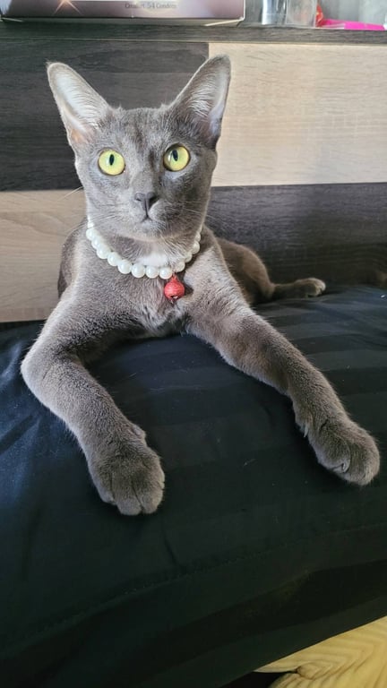 รอยตำหนิ: หางตรง มีขนสีขาวตรงอกนิสัยกลัวคน ตาสีเขียวเหลือง