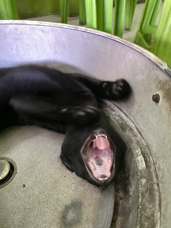 รอยตำหนิ: ปลายหางหักนิดหน่อย (จับถึงจะรู้) มีปานดำในปากแขนยาว ขายาว หัวเล็ก ตัวใหญ่