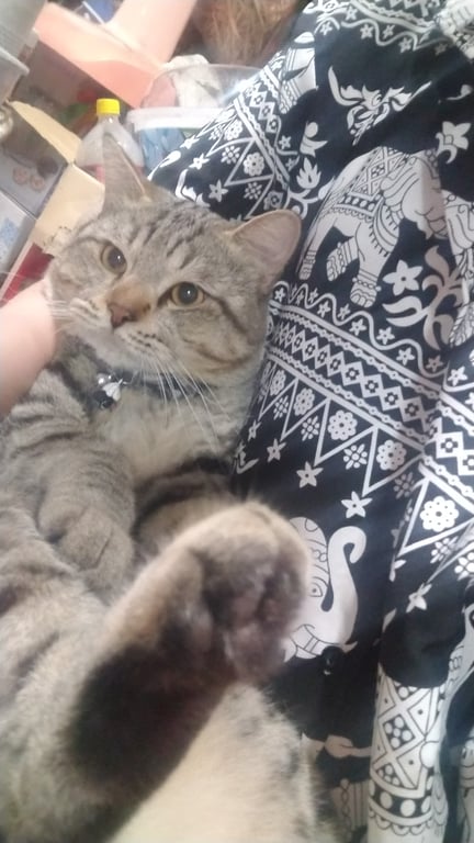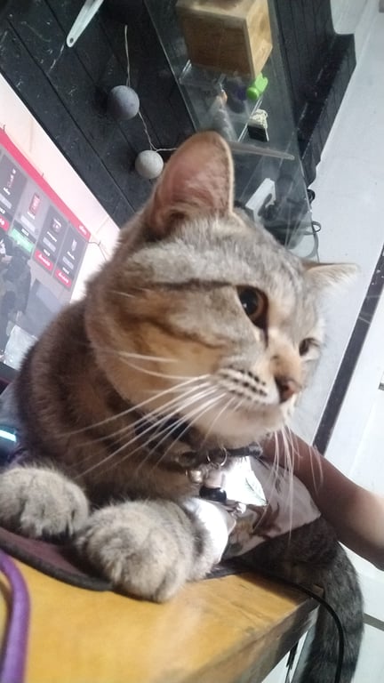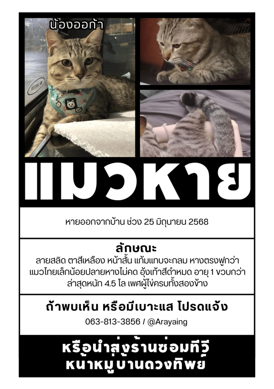 รอยตำหนิ: ลายสลิด ตาสีเหลือง หน้าสั้น หางฟู