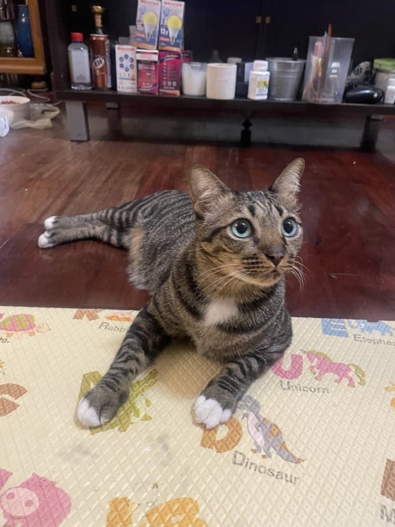 รอยตำหนิ: ตาสีเขียว มีถุงเท้าดุ ขี้กลัว ขี้ตกใจ