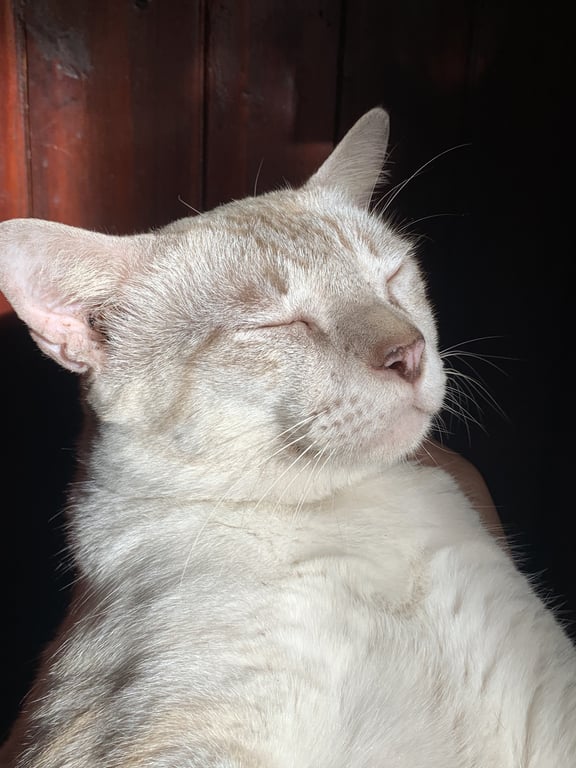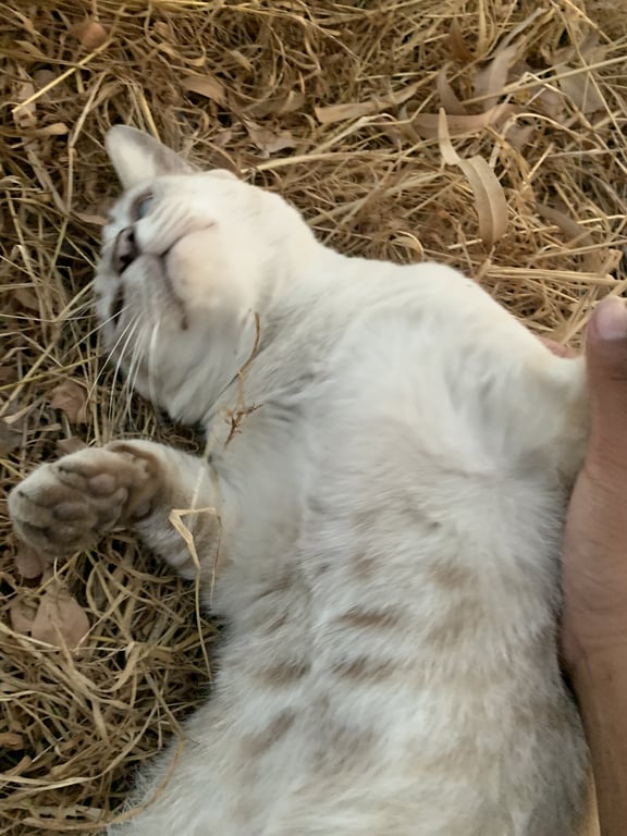 รอยตำหนิ: หูเล็ก หน้ากลม เวลาเรียกชอบร้องปกติชอบร้อง เชื่องกับคน เวลาเดินกลางวันหลับตาบ่อย ท่านอนประจำชอบนอนหงายท้องค่ะ กินอาหารได้ทุกแบบ