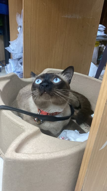 รอยตำหนิ: ที่เท้าสีขาวไม่ให้อุ้มนาน ไม่ค่อยร้อง ชอบกินขนมแมวเลียมาก