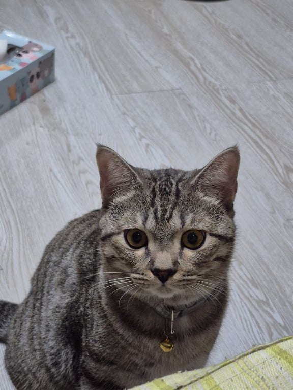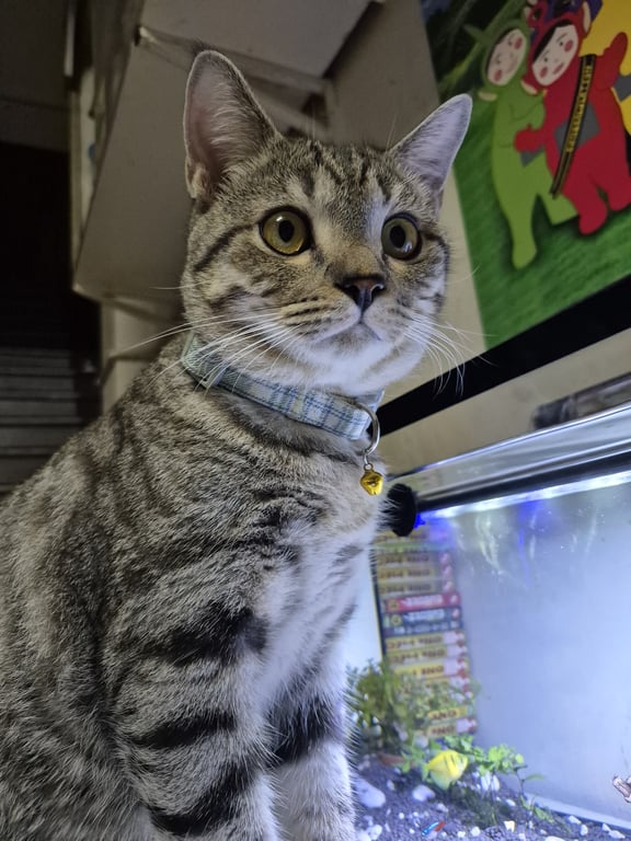 รอยตำหนิ: ตัวอ้วน มีปลอกคอสีฟ้ากระดิ่งสีเหลือง จับตรงที่ปลายหางจะงอเล็กน้อย