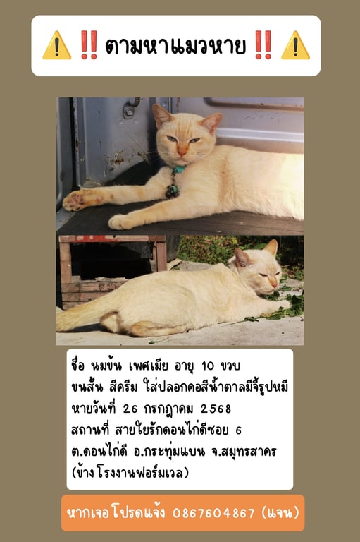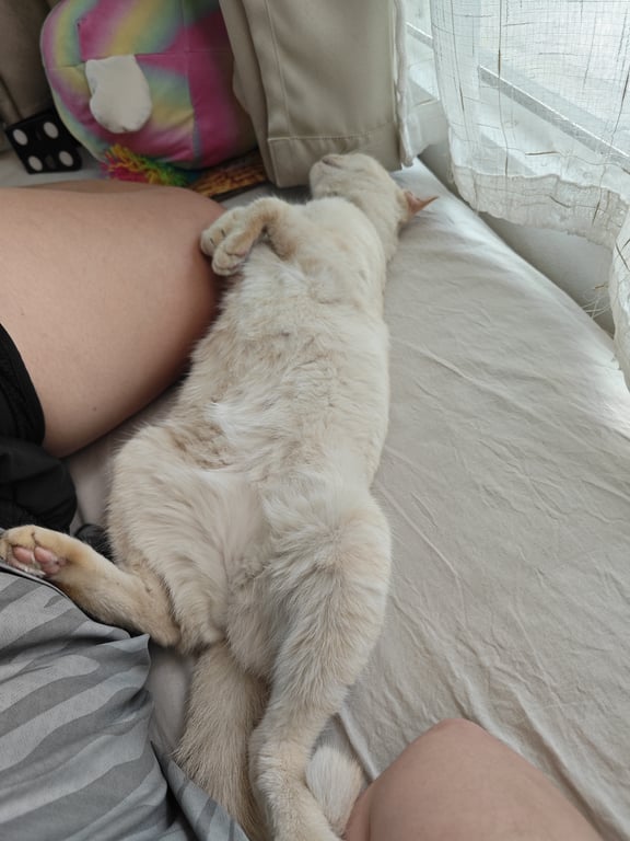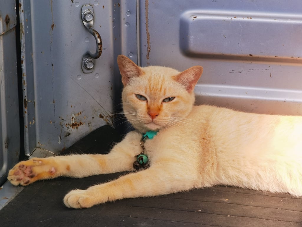 รอยตำหนิ: ตกกระตามขอบตาและปาก ปลายหางงอเล็กน้อย แต่ไม่สามารถมองเห็นได้ชัดเจน ต้องใช้มือลูบเท่านั้นชอบอยู่เงียบๆ ขี้อ้อนแต่ก็ขี้รำคาญ ชอบอยู่คนเดียว ไม่ชอบเสียงดัง เวลาอากาศร้อนจะชอบนอนหงานแอ้งแม้งผึ่งพุง