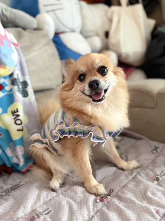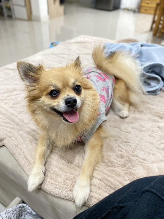รอยตำหนิ: ตาบอดใสข้างขวา/ตาข้างขวาเล็กกว่าข้างซ้ายขี้ตกใจ ไม่เคยออกนอกบ้าน ชอบเห่า