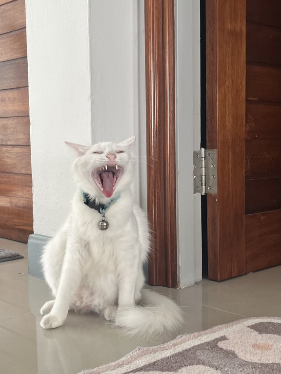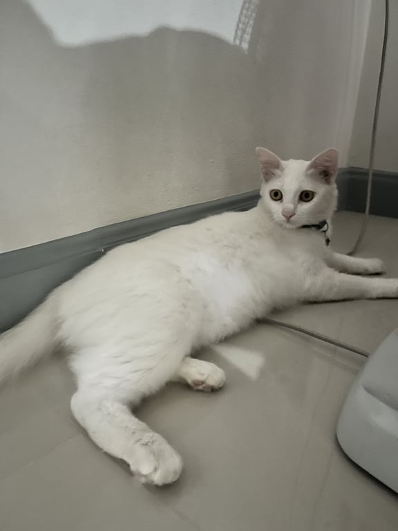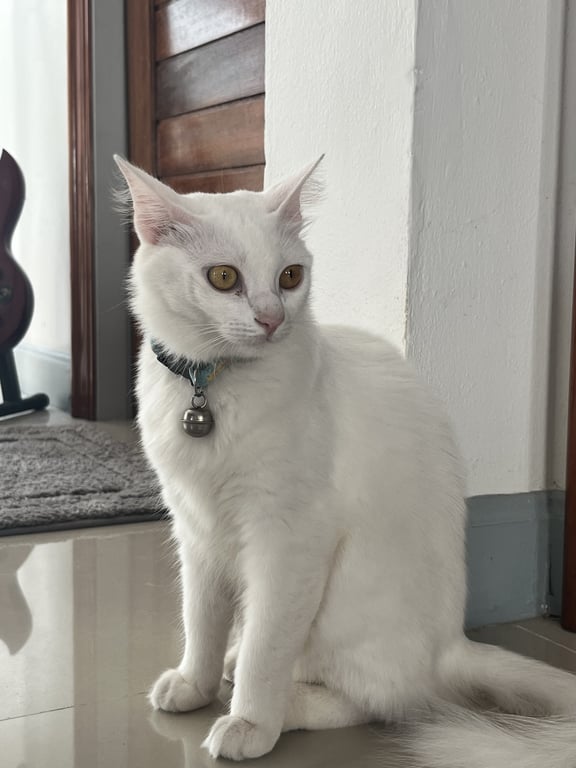 รอยตำหนิ: หางตรงพวง ตาสีเหลือง ปลอกคอสีฟ้า สีขาวทัังตัว ใบหูอมชมพูเล็กน้อยหนีออกไปจากบ้านกลางดึกคืนวันที่ 31 ระแวกหมู่บ้านตะวันฉาย คลองแห หาดใหญ่ ใกล้ตลาดฟุกเทียน นิสัย ขี้กลัว ไม่ดุร้าย ไม่ค่อยส่งเสียง