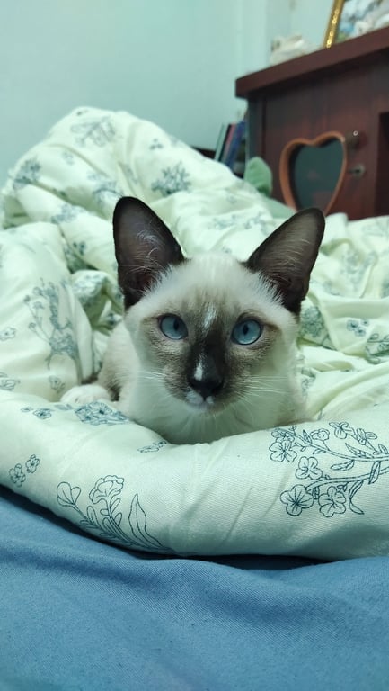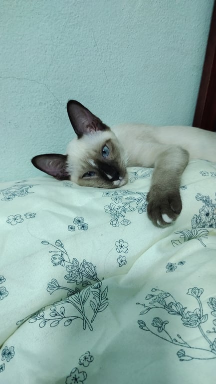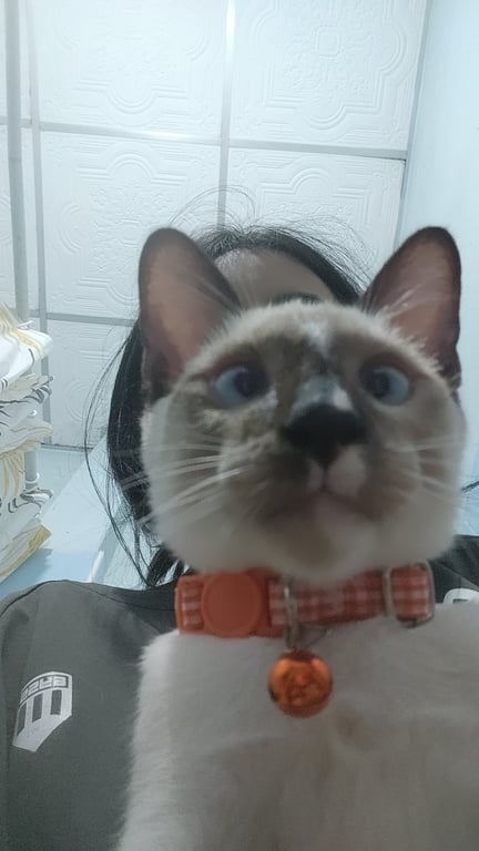 รอยตำหนิ: ปลอกคอสีส้ม จมูกน้องจะโด่ง ตาสีฟ้า ตาน้องเหล่ค่ะ ตาข้างซ้ายชอบแฉะมีคราบน้ำตาตลอดน้องชอบเล่นค่ะ ชอบเล่นลูกบอลกับเชือกยาวๆ