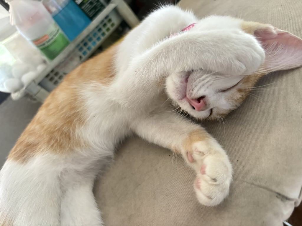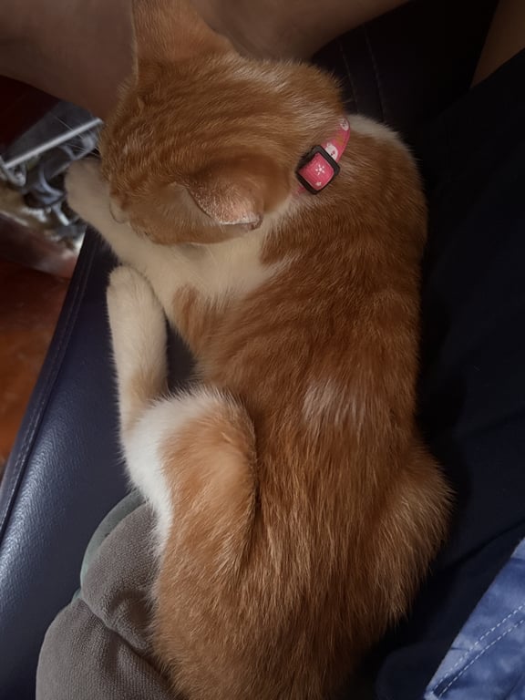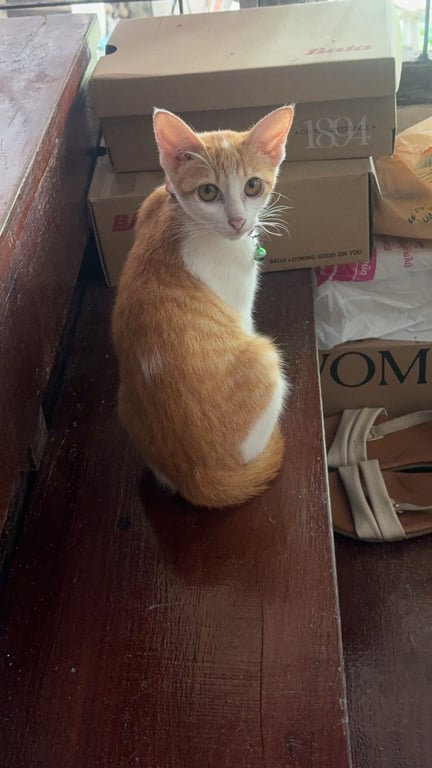 รอยตำหนิ: มีรอยแต้มขาวบริเวณหลังใส่ปลอกคอกระดิ่งสีชมพู