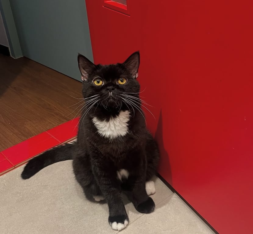 รอยตำหนิ: ขนสีดำ มีแผงคอสีขาว หนวดขาวลักษณอ้วนกลม กินเก่ง ชอบร้องเสียงในลำคอ