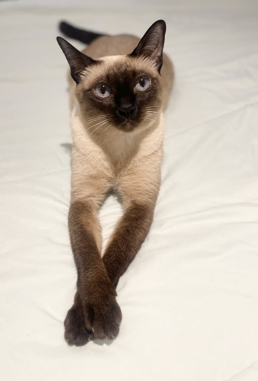 รอยตำหนิ: ตาสีฟ้า หน้าไหม้ ใส่ปลอกคอ Air Tag สีชมพูขี้กลัว