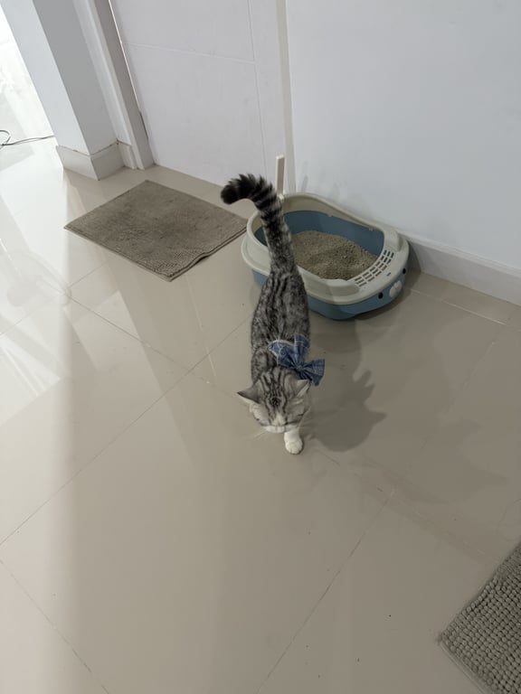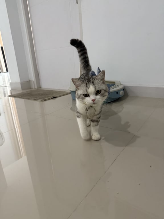 รอยตำหนิ: จมูกสีชมพู สะโพกขวามีแต้มขาวเฟลนด์ลี่ เข้ากับคนง่าย ขี้อ้อน ชอบเที่ยวเล่น กวดกับแมวตัวอื่น คล่องแคล่วว่องไว