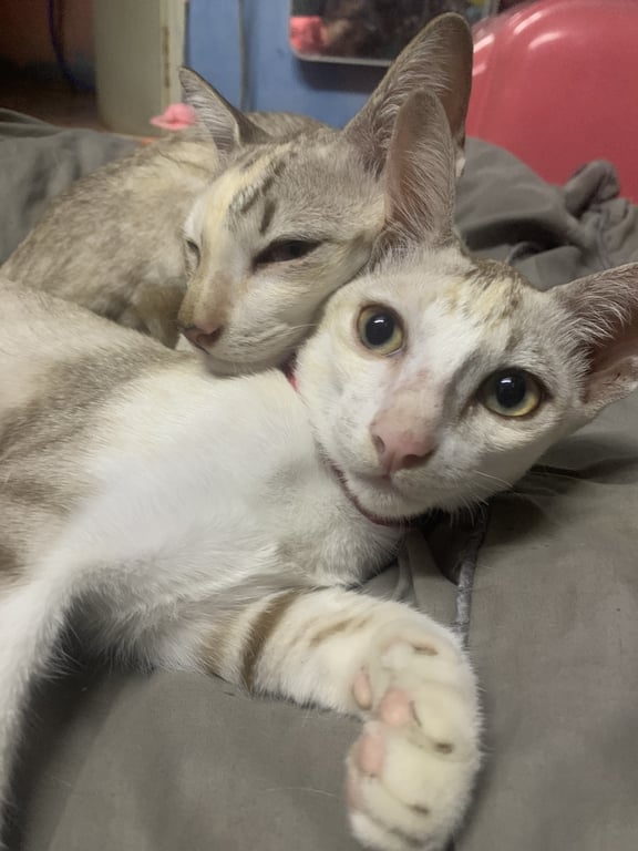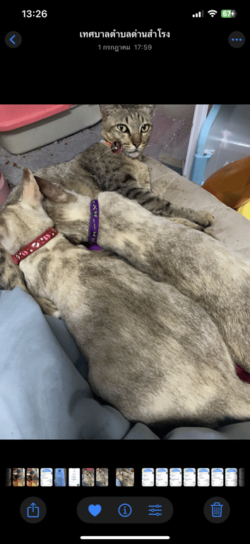รอยตำหนิ: หางขอดหางขอด จมูกสีดำ ปลอกคอม่วงมีป้ายสลักชื่อแต่ไม่ได้ใส่ชื่อ