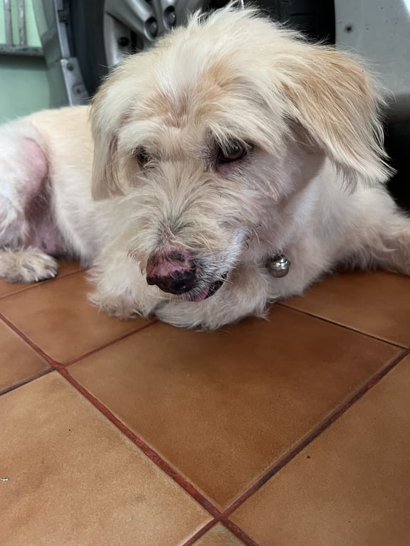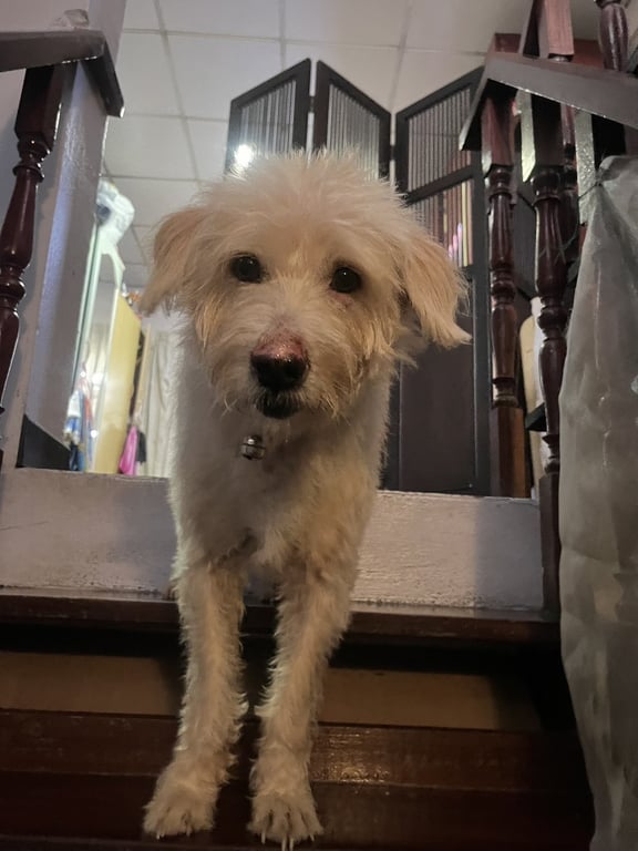 รอยตำหนิ: ขนสีขาว มีปลอกคอสีเขียวกับกระดิ่งตัวสีขาว อยู่ที่เอกชัย30 ปลอกคอสีเขียว มีกระดิ่ว ตัวใหญ่ไซส์กลาง