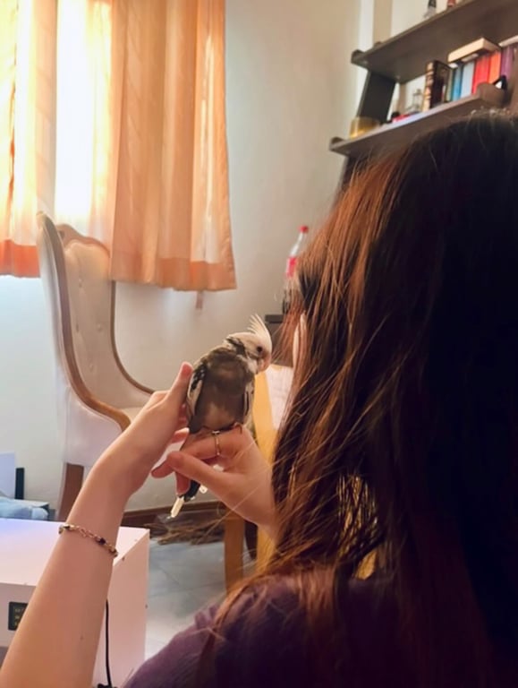 รอยตำหนิ: มีห่วงขาสีแดงเเละมีหางยาว สามารถร้องเพลงได้ ร้องเสียงดัง หรือทำเสียงแปลกๆๆที่ไม่ใช่เสี่ยงนก มีหงอนหัวสีขาวตัวสีเทาน้องติดหนูมากๆ เวลาไปต่างจังหวัดแล้ววฝากกับแม่บ้านหรือเพื่อนน้องจะไม่ยอมทานข้าว,น้องมีคู่ของน้องถ้าจับห่างกันน้องจะร้องไม่หยุด น้องชอบเต้น และร้องเพลง ห่างจากเจ้าของไม่ได้ ต้องตัวติดกันตลอด วันนั้นน้องหลุดเพราะตกใจพ่อหนู วันนั้นหนูทะเลาะกับพ่อหนักเรื่องแฟนนใหม่พ่อค่ะ ถึงทำให้เกิดเหตุการณ์หลุดของน้อง
