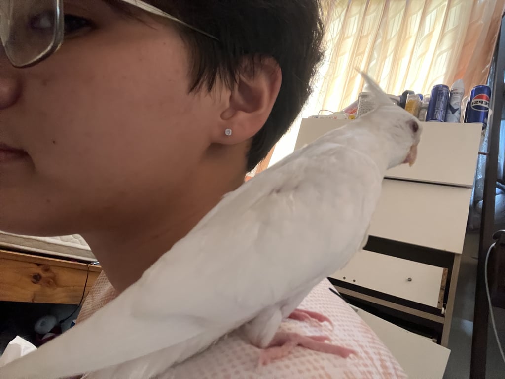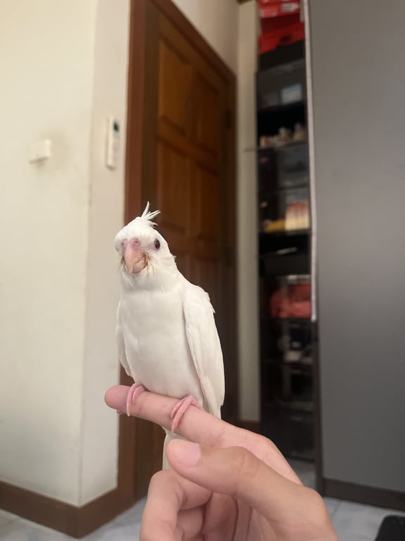 รอยตำหนิ: ตาสีแดง ตัวสีขาว มีหงอนดุมากกกกก ขี้ตกใจ ฉกเก่ง มีแค่่หนูคนเดียวที่จับได้