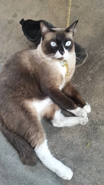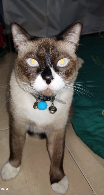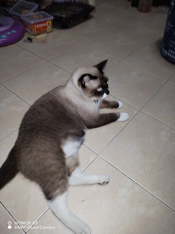 รอยตำหนิ: หางขอดเล็กน้อยน้องจำชื่อตัวเองได้ น้องชอบการนวด น้องจะคุ้นคนง่ายเวลาหิว น้องจะดื้อเวลาไม่ได้ดั่งใจ น้องกินอาหารเม็ดและอาหารเปียกอย่างเดียวค่ะ