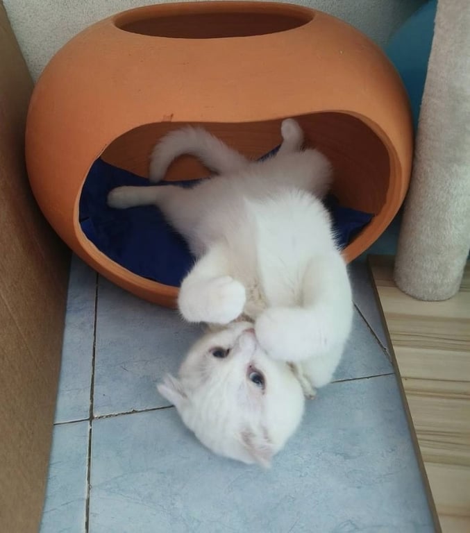 รอยตำหนิ: หน้าตาเศร้าดูเศร้าตลอดเวลาไม่รู้อายุที่แน่ชัด นิสัยน่ารัก ขี้อ้อน ไม่กลัวคน ถ้าไม่ทำให้น้องกลัวก่อน นอนได้ทุกที่ และชอบนอนท่าประหลาดหรือท่าหงายท้อง มีเสียงร้อง งิ้ว ที่ฟังดูน่ารักและขี้อ้อน