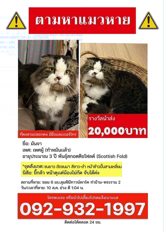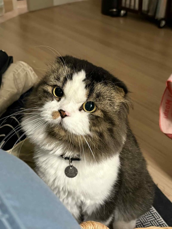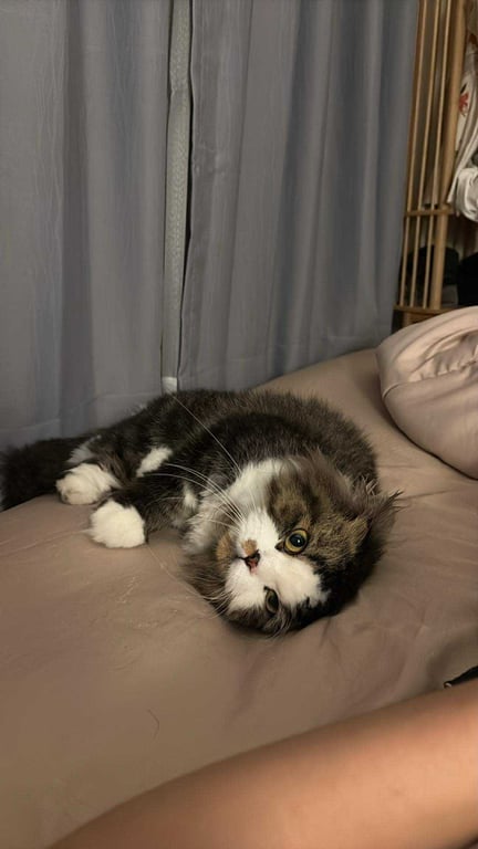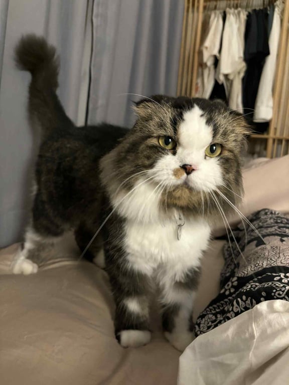 รอยตำหนิ: (ทำหมันแล้ว) อายุประมาณ 3 ปี พันธุ์สกอตติชโฟลด์ (Scottish Fold) *จุดสังเกต: ขนสั้น สีขาว-ดำ หน้าเป็นรูปสามเหลี่ยม นิสัย: ขี้กลัว หน้าดุแต่น้องไม่กัด จับได้ค่ะขี้กลัว หน้าดุ แต่ไม่กัดค่ะ
