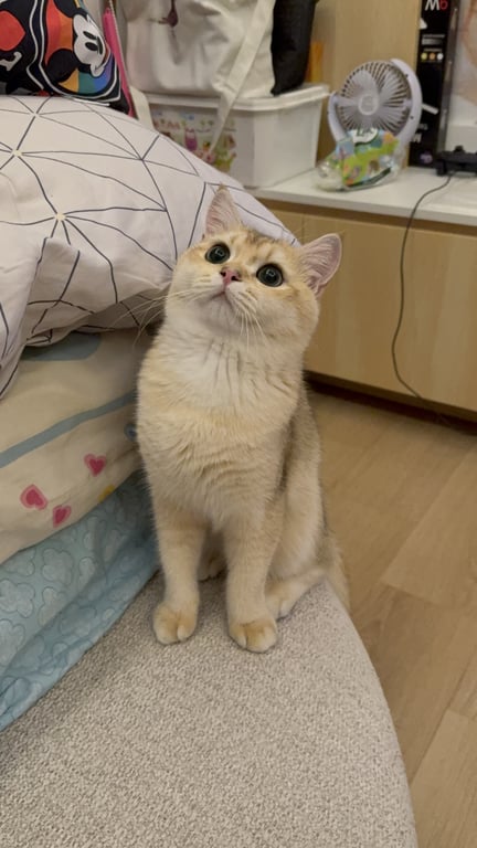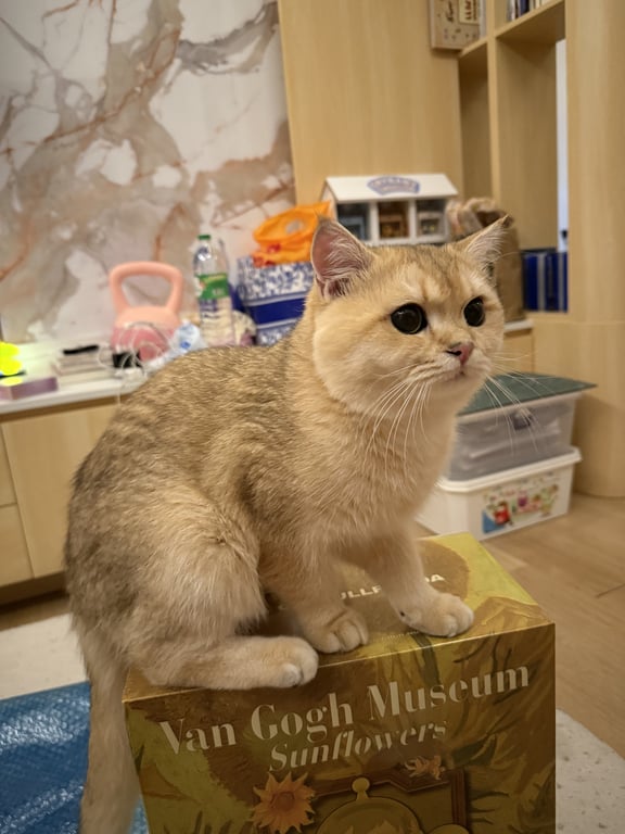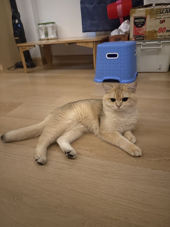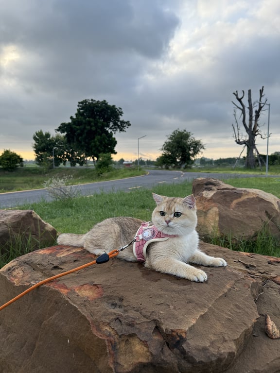 รอยตำหนิ: ตาสีฟ้าอมเขียวนิด ๆ แก้มและเหนียงใหญ่ สีขนตั้งแต่ใต้คางไปถึงใต้ลำตัวจะสีเหลืองนวลอ่อน บางจุดค่อนไปทางเกือบขาว ขนปลายหางสีดำ จมูกสีชมพูอ่อนเป็นมิตร ติดคนมาก ช่างอยากรู้อยากเห็น กลัวเสียงดัง