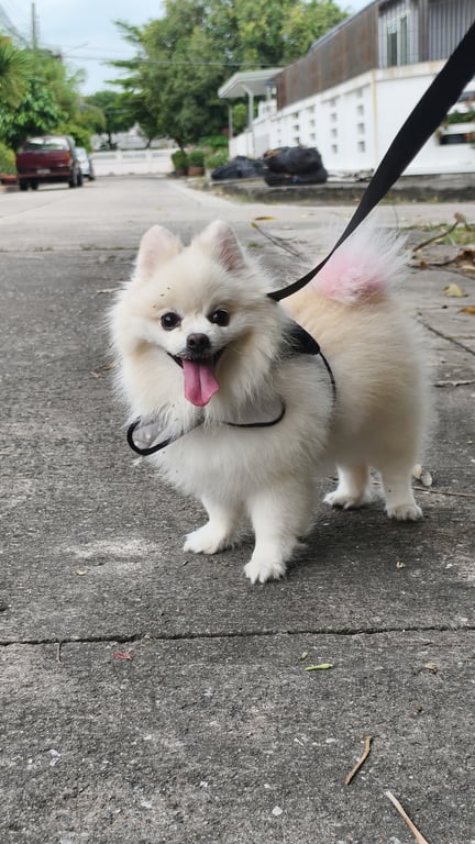รอยตำหนิ: น้องสีขาว แต่ขนบนหลังจะออกส้มๆ มีฟันเขี้ยวข้างเดียว