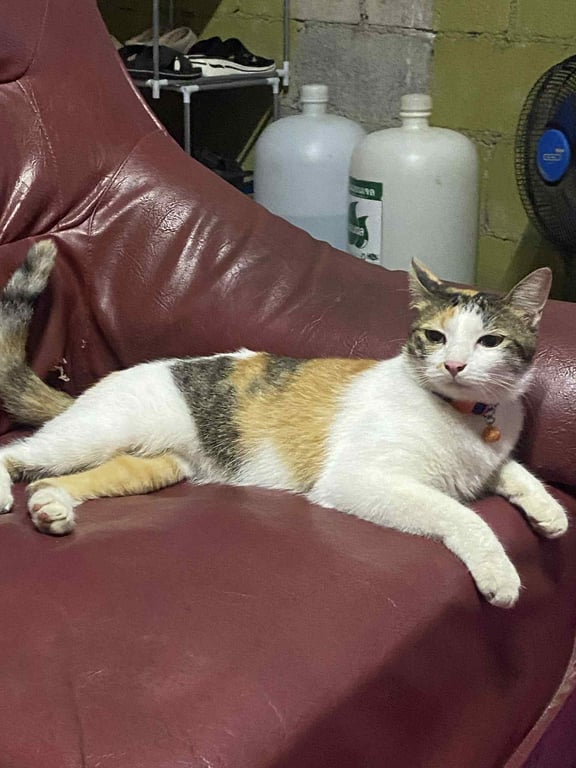 รอยตำหนิ: บริเวณหางขนจะไม่สม่ำเสมอกันค่ะน้องไม่ดุ กลัวคน ทำหมันแล้ว น่าจะหายช่วงค่ำ วันที่19/08/68 แต่สอบถามจากคนบริเวณนั้น มีคนเห็นรถเก็บของเก่าอุ้มน้องไป หายจากบริเวณหลังโรงเรียนญส .หาดใหญ่ น้องลายสามสี ตอนหายใส่ปลอกคอแบบในรูปค่ะ