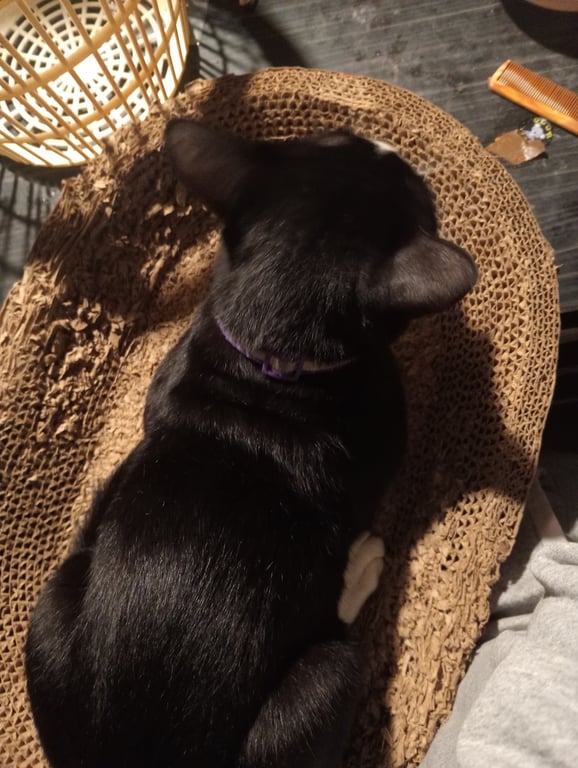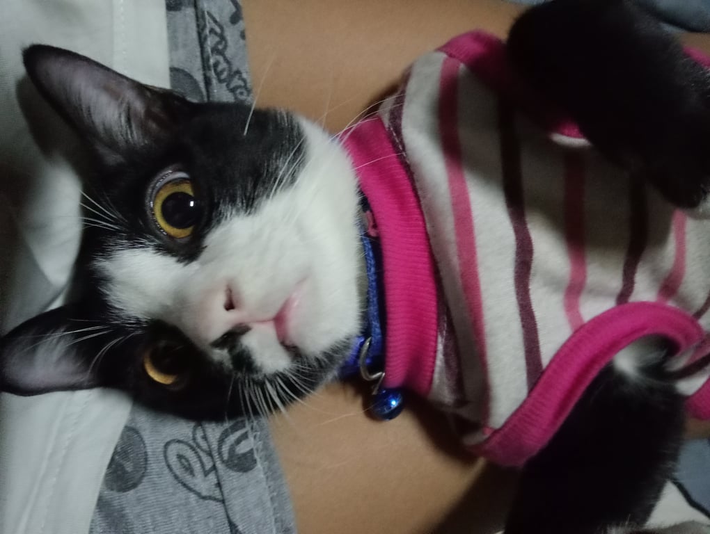 รอยตำหนิ: น้องมีไฝใหญ่ตรงจมูกตามรูปเลยค่ะ ตัวค่อนข้างเล็กน้องค่อนข้างเล็กค่ะ ขนนิ่มๆ น้องจะขี้ตกใจขี้กลัว มีถุงเท้า4ข้าง ใส่กระดิ่งสีดำผสมเหลือง