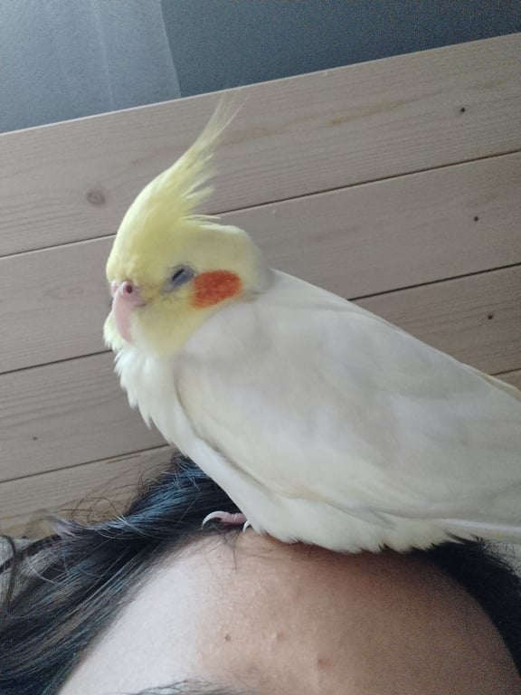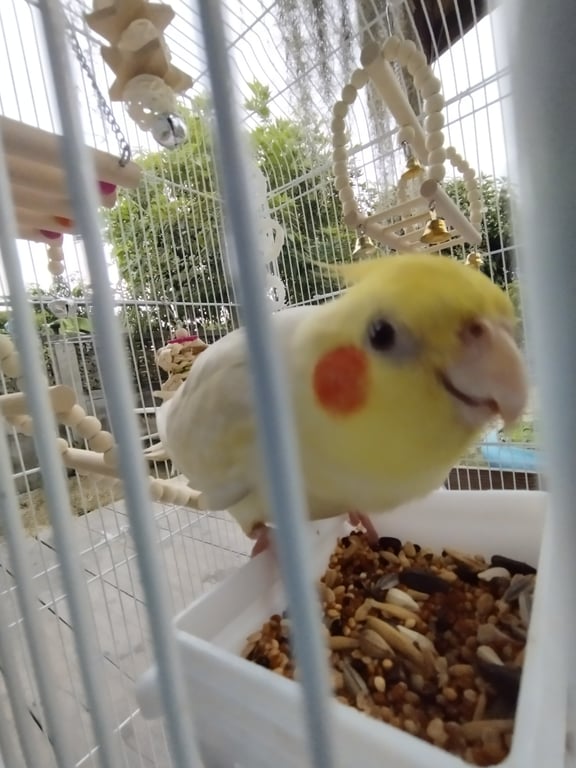 รอยตำหนิ: สีขนขาวเหลืองแก้มส้ม มีห่วงข้อเท้าสีแดงชอบร้องเพลง และจะทำเสียงดังเวลาไม่เห็นคน
