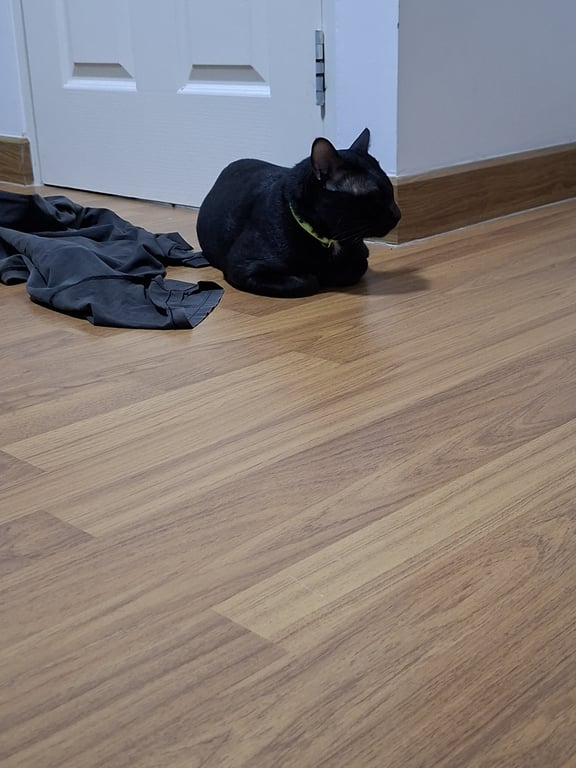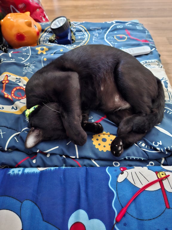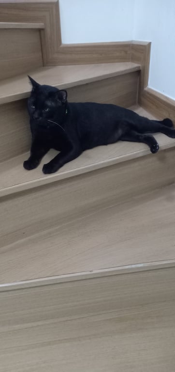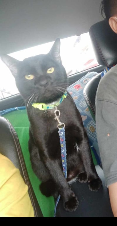 รอยตำหนิ: จุดสีขาวเล็กน้อยตรงท้อง หางยาวปลายหางหัก ใส่ปลอกคอสีเขียวขี้กลัว