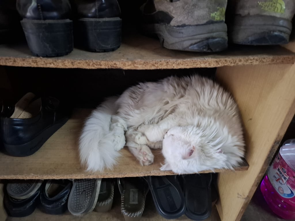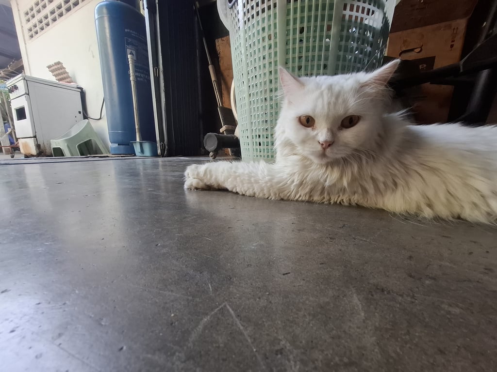 รอยตำหนิ: สวมปลอกคอสีชมพู มีกระดิ่งสีชมพูลูบได้ พูดน้อย เสียงหวาน ชอบนอนในที่ร่ม ไม่ชอบให้อุ้ม ถ้าอุ้มจะดิ้นแลร้อง ชอบนอนเหยียดขา