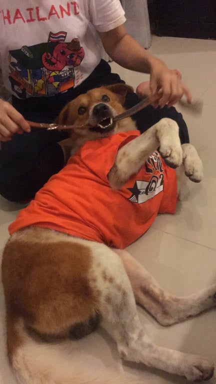 รอยตำหนิ: มีรอยแผลกดทับที่เข่า กับหูปก หลังอาน ฟันล่างข้างหน้าสั้นๆ ท้องขาวมีลายบ้างขี้กลัว ชอบกินไก่ เห็นนิ่งๆอย่าเอามือไปจับต้องรอกระดิกหางก่อน ไม่เคยกัดคน แต่ไม่ค่อยเชื่อใจคน ชอบกระโดดกับตะกายเรา ต้องให้มันเดินเข้ามาหาเอง ขอมือได้ สั่งนั่งได้ ชอบแสดงสีหน้า