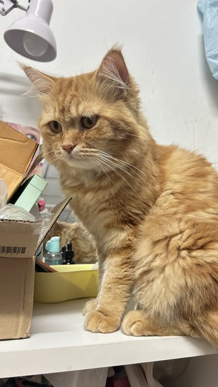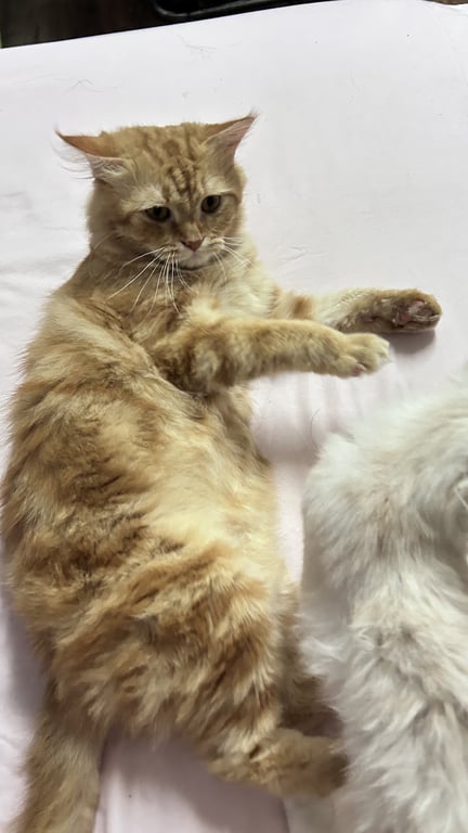 รอยตำหนิ: ไข่ดำขนตรงไข่หาย ขนบริเวณนิ้วมือด้านขวาหายไปนิดหน่อย เพราะเคยเป็นเชื้อราปัจจุบันใส่ปลอกคอสีแดง