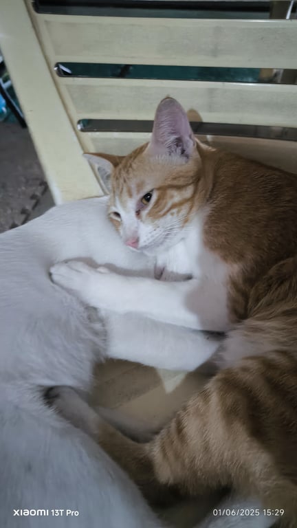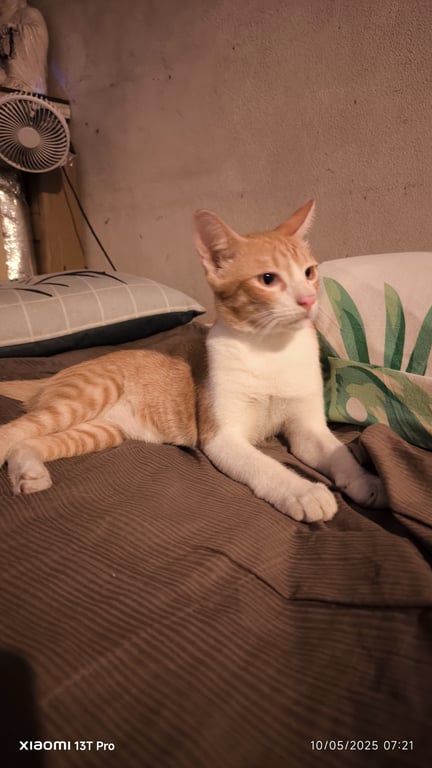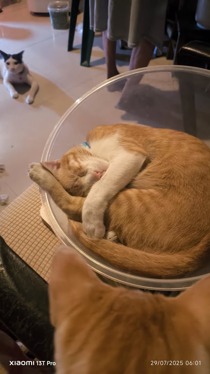รอยตำหนิ: ขาหลังขวามีนิ้วเท้าสองนิ้ว เดินกะเพลกพิการแมวตัวเล็กกว่าแมวปกติ ขี้ตกใจกับคนแปลกหน้า กินเก่ง ทานอาหารเม็ด อาหารทั่วไป อาหารเปียก เวลาให้อาหารกระป๋อง แค่าะกิดห่วงฝาเปิดแกร๊กๆน้องจะร้องขออาหาร ถ้าเสลาสองทุ่มน้องจะมาเรียกให้เข้านอนทุกวันเมื่อสนิท