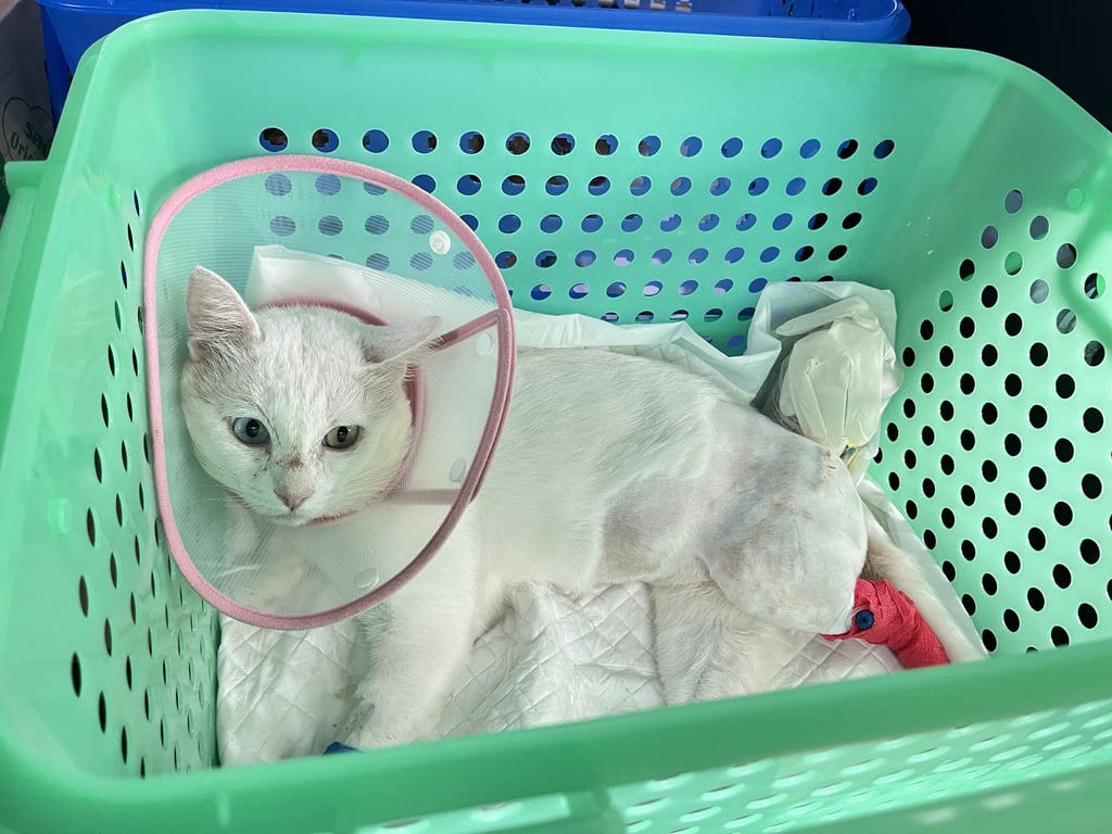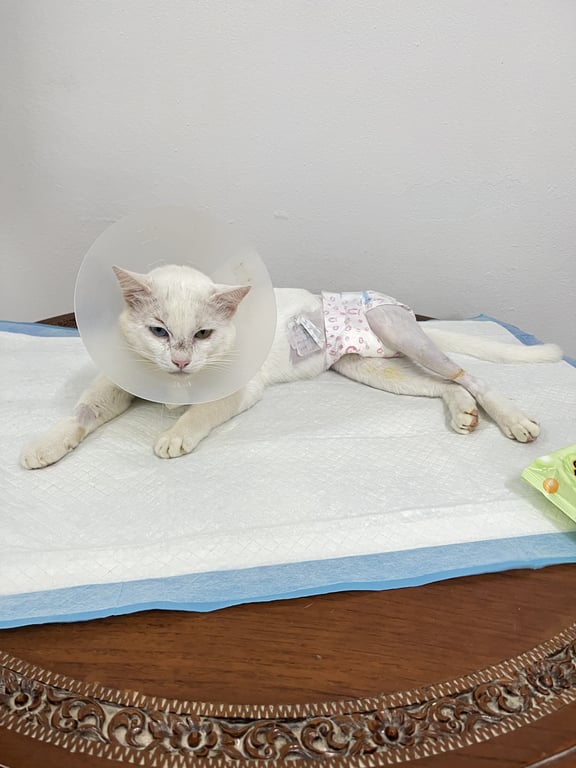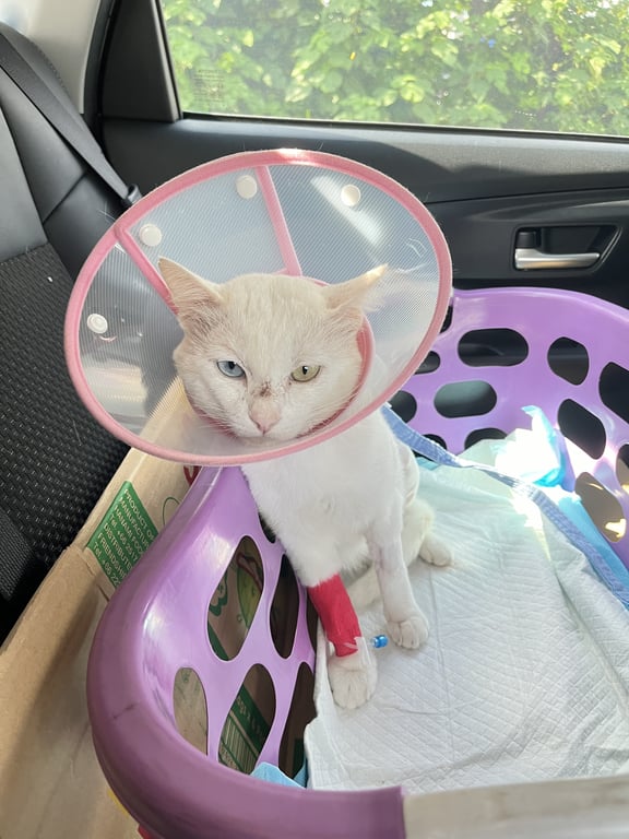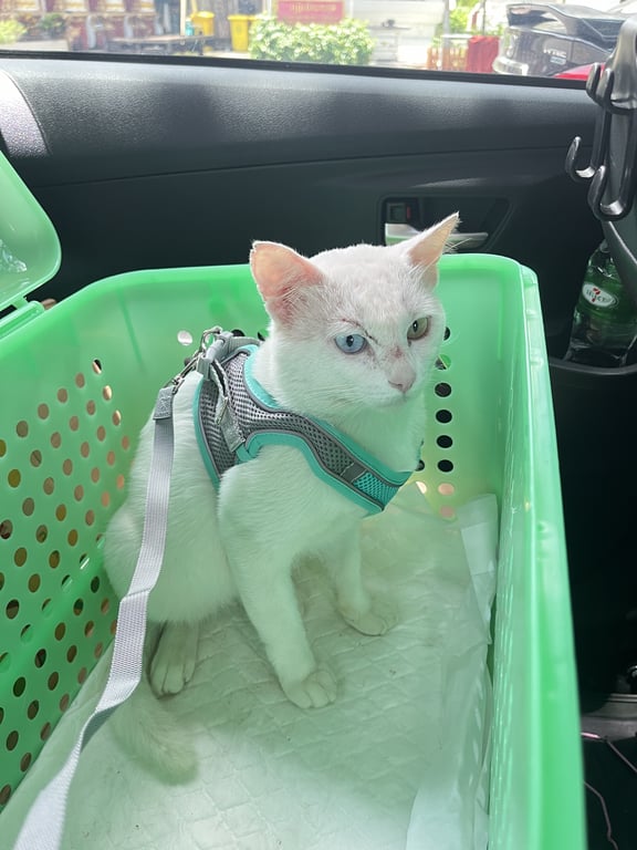 รอยตำหนิ: ตาสองสีน้องไม่กัดน้องใส่ลำโพงน้องไม่กัดน้องใส่ลำโพงสีชมพูมีเข็มให้น้ำเกลือที่เท้าหลังน้องเจ็บขา น้องค่าไตสูงมาก พึ่งผ่าตัดสะโพก ให้น้ำให้น้ำเกลือมาสามสี่วันแล้ว ให้เสร็จก็เอากลับบ้านน้องไม่ค่อยสบายพี่พี่ช่วยตามหาน้องให้หนูหน่อยค่ะ
