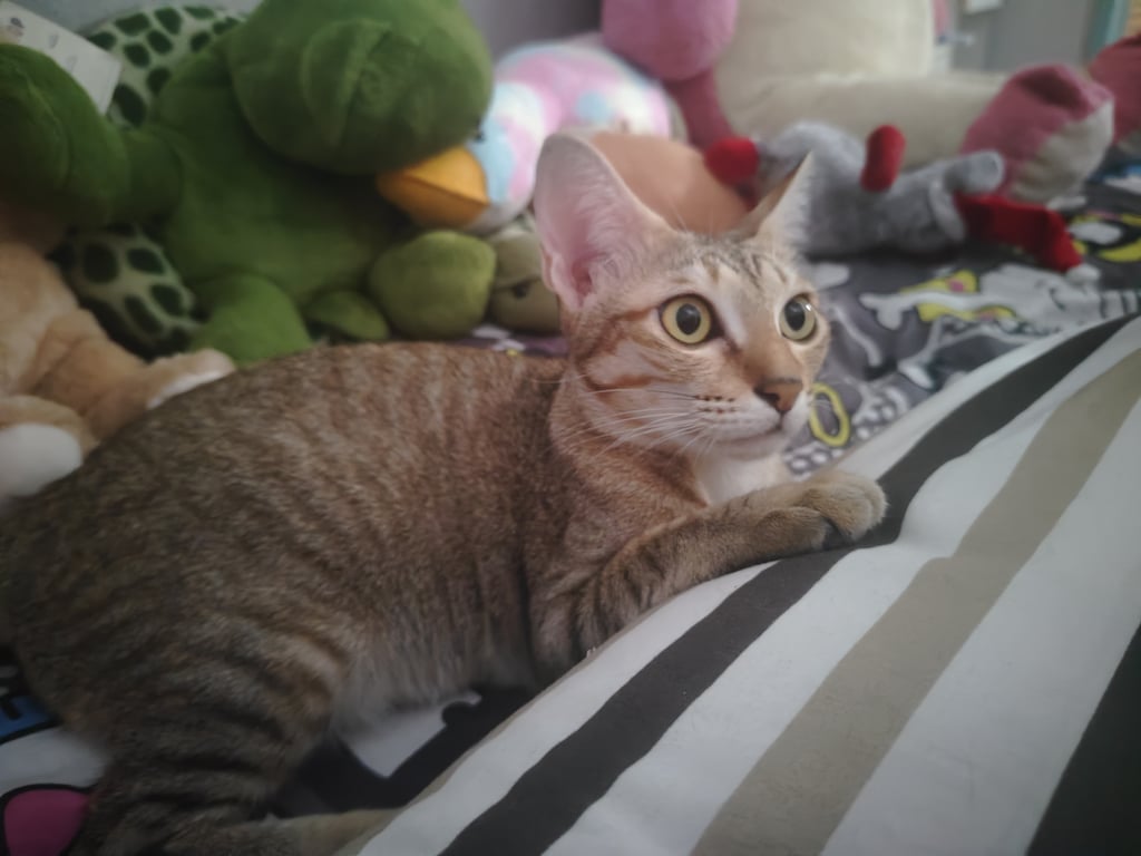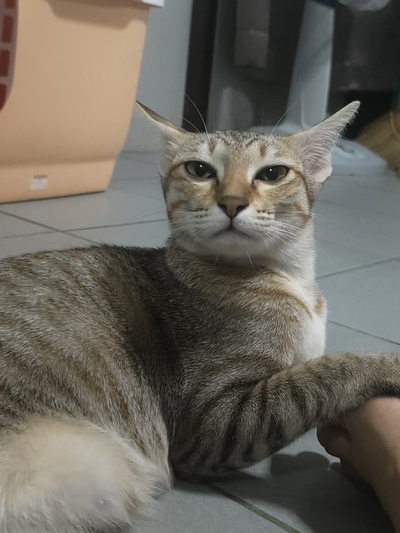 รอยตำหนิ: จมูกสีน่ำตาลอ่อนขอบดำ หายที่อ่อนนุช30ค่ะน้องไม่ดุค่ะ มีพุงย้อยๆตัวเมีย ชอบกระดกตูดค่ะ ท้องสีขาวลายปลานิลค่ะ