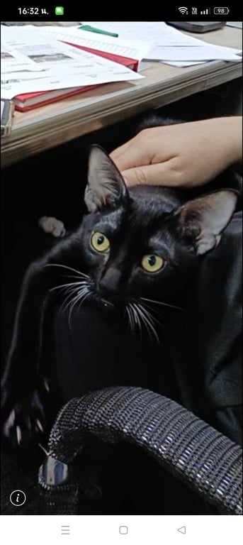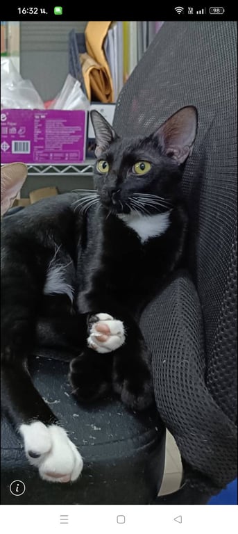 รอยตำหนิ: ใส่ถุงเท้า ที่เท้าหลังทั้ง 2 ข้าง คอสีขาวอายุ 6 เดือนขึ้นไป ไม่เกิน 1 ปี ตาสีเหลือง หนวดสีขาว ตัวสีดำสนิท ขนดำเงาสวย มาสีขาวที่คอ (เหมือนใส่ เสื้อคอวี) และท้อง ขี้กลัวคน