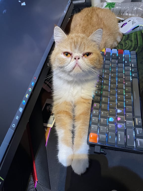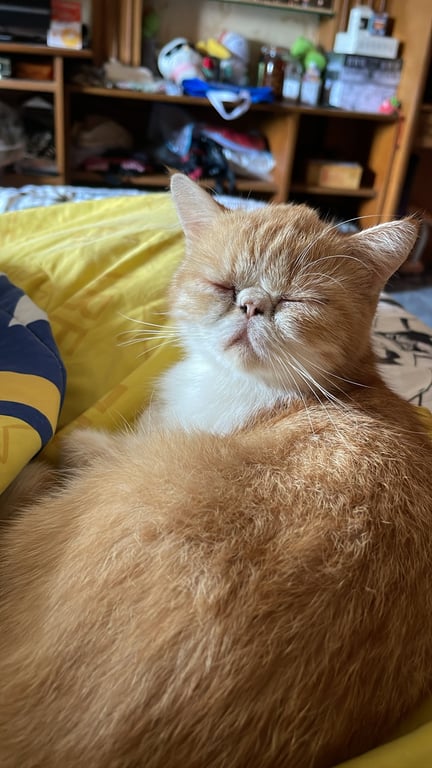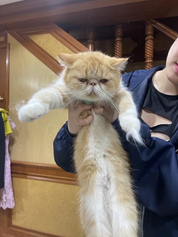 รอยตำหนิ: หน้าบี้ ตาข้างซ้ายมีรอยขุ่นคล้ายฝ้าจางๆตัวไม่ใหญ่มาก ขนาดกลาง หน้าบี้ ไม่ดุ ไม่กัด ไม่ข่วน ไม่ค่อยร้อง ที่หางเป็นลายส้มสลับขาว