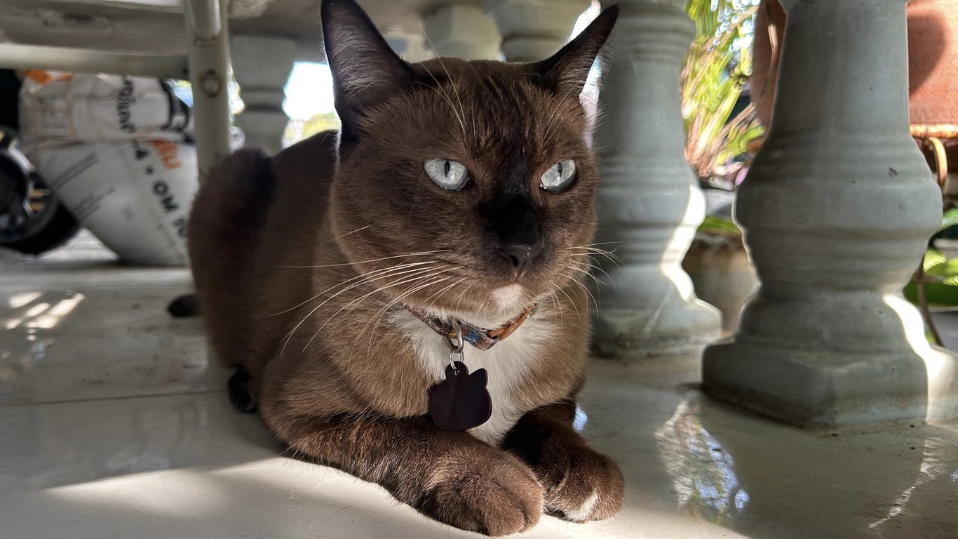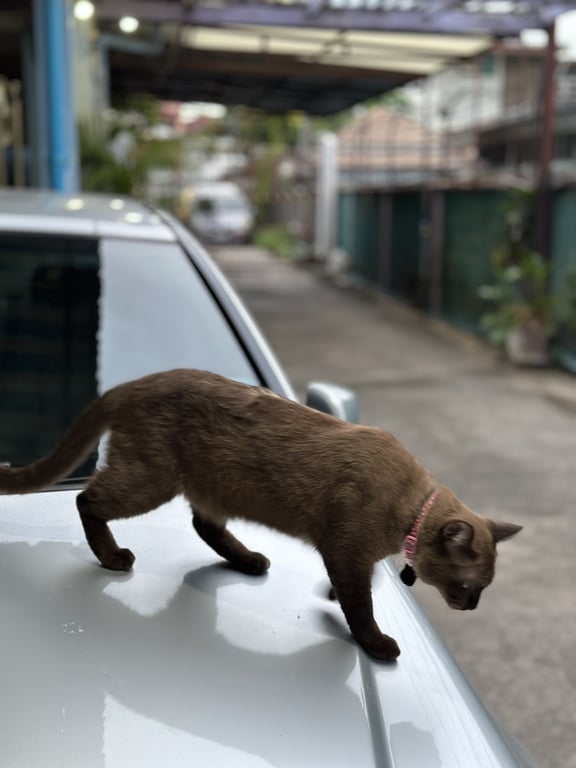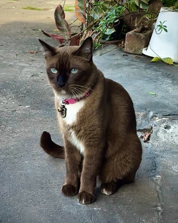 รอยตำหนิ: สีน้ำตาลเข้ม มีเคราสีขาว หน้าอกสีขาวนิ่งๆ ไม่ค่อยเข้าหาคน หยิ่งๆ , ไม่ดุไม่กัด , ไม่ร้อง