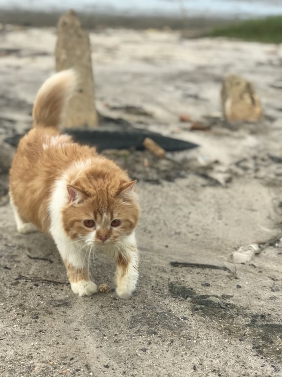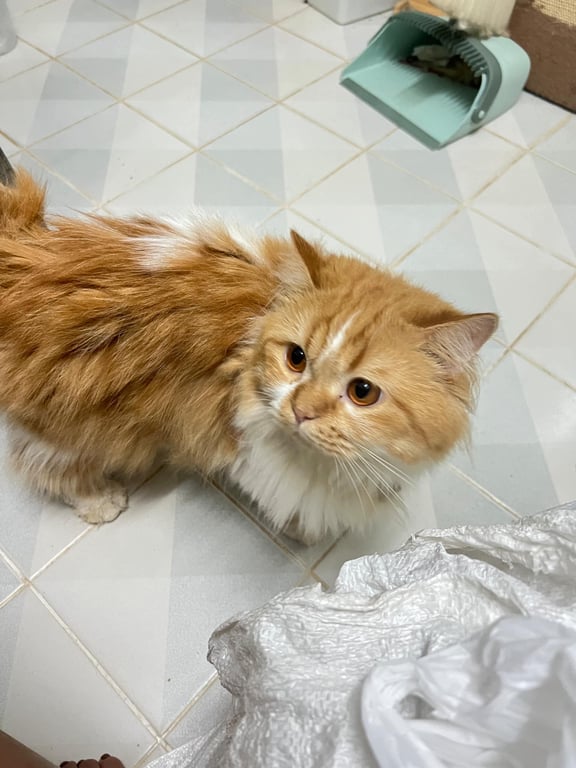 รอยตำหนิ: ปลอกคอสีแดง มีชื่อน้องและเบอร์โทรอยู่ตัวโต ขนยาวๆ สีขาว ส้ม